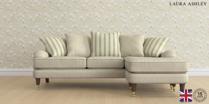 6.12.1 Buy Lynden Scatter Back by Laura Ashley Medium Sofa Chaise - Universal Kinsham Stripe Combo Natural and Hedgerow Green Ornate Brass Castor - Chestnut from the Next UK online shop Click here to use our accessible website