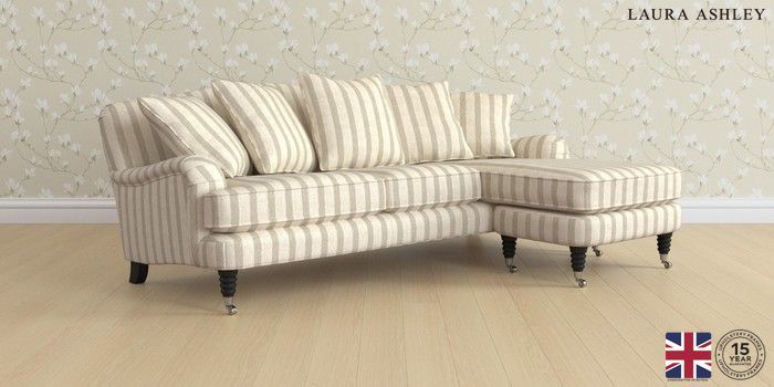 6.12.1 Buy Lynden Scatter Back by Laura Ashley Medium Sofa Chaise - Universal Kinsham Stripe Natural Ornate Chrome Castor - Black from the Next UK online shop Click here to use our accessible website