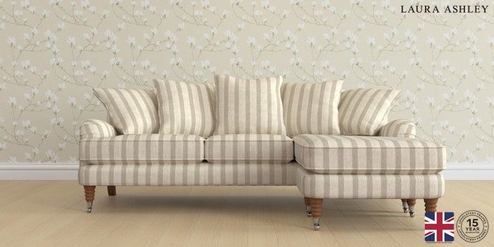 6.12.1 Buy Lynden Scatter Back by Laura Ashley Medium Sofa Chaise - Universal Kinsham Stripe Natural Ornate Chrome Castor - Teak from the Next UK online shop Click here to use our accessible website