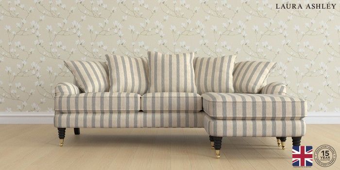 6.12.1 Buy Lynden Scatter Back by Laura Ashley Medium Sofa Chaise - Universal Kinsham Stripe Seaspray Blue Ornate Brass Castor - Black from the Next UK online shop Click here to use our accessible website