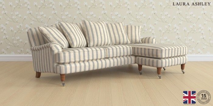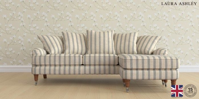 6.12.1 Buy Lynden Scatter Back by Laura Ashley Medium Sofa Chaise - Universal Kinsham Stripe Seaspray Blue Ornate Chrome Castor - Teak from the Next UK online shop Click here to use our accessible website