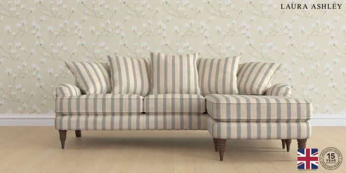 6.12.1 Buy Lynden Scatter Back by Laura Ashley Medium Sofa Chaise - Universal Kinsham Stripe Seaspray Blue Ornate Turned - Chestnut from the Next UK online shop Click here to use our accessible website