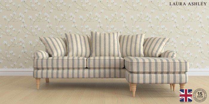 6.12.1 Buy Lynden Scatter Back by Laura Ashley Medium Sofa Chaise - Universal Kinsham Stripe Seaspray Blue Ornate Turned - Light Oak from the Next UK online shop Click here to use our accessible website