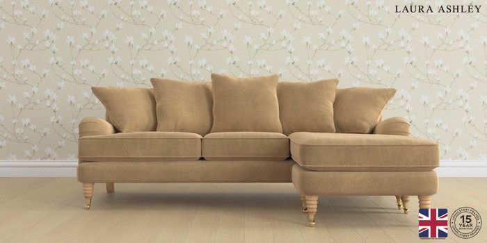 6.12.1 Buy Lynden Scatter Back by Laura Ashley Medium Sofa Chaise - Universal Lundar Chenille Caramel Natural Ornate Brass Castor - Light Oak from the Next UK online shop Click here to use our accessible website