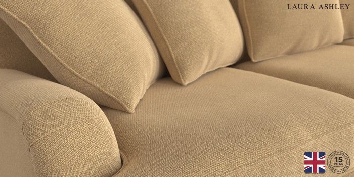 6.12.1 Buy Lynden Scatter Back by Laura Ashley Medium Sofa Chaise - Universal Lundar Chenille Caramel Natural Ornate Chrome Castor - Teak from the Next UK online shop Click here to use our accessible website