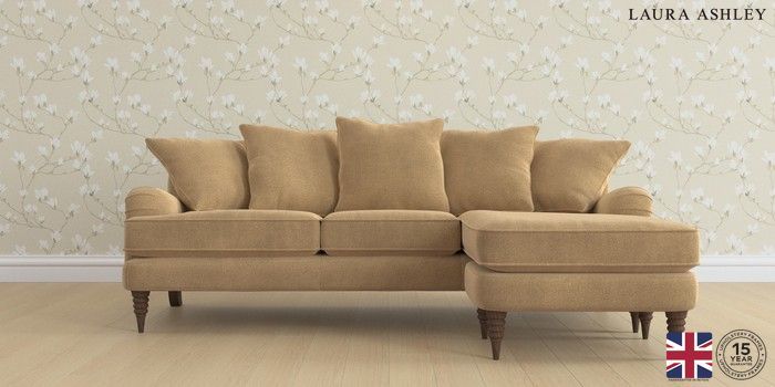 6.12.1 Buy Lynden Scatter Back by Laura Ashley Medium Sofa Chaise - Universal Lundar Chenille Caramel Natural Ornate Turned - Chestnut from the Next UK online shop Click here to use our accessible website
