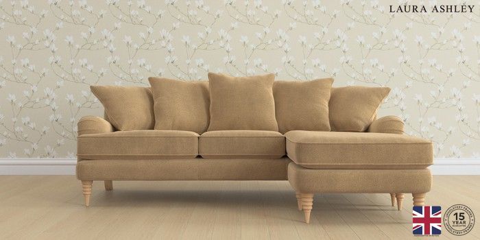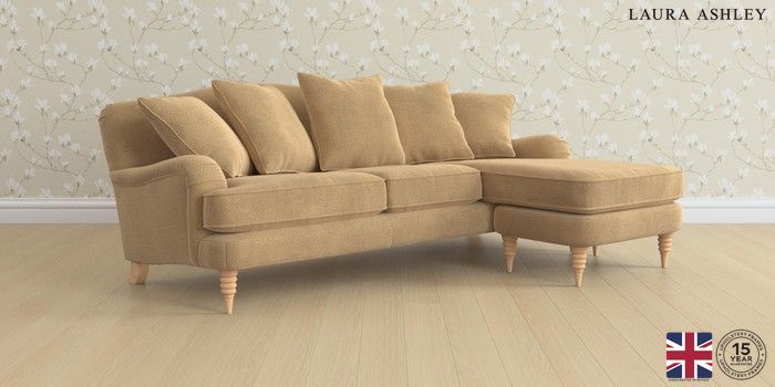6.12.1 Buy Lynden Scatter Back by Laura Ashley Medium Sofa Chaise - Universal Lundar Chenille Caramel Natural Ornate Turned - Light Oak from the Next UK online shop Click here to use our accessible website