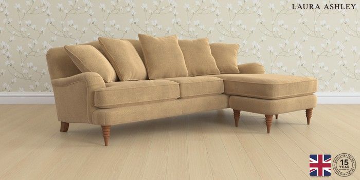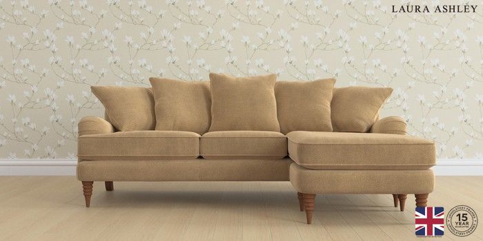 6.12.1 Buy Lynden Scatter Back by Laura Ashley Medium Sofa Chaise - Universal Lundar Chenille Caramel Natural Ornate Turned - Teak from the Next UK online shop Click here to use our accessible website