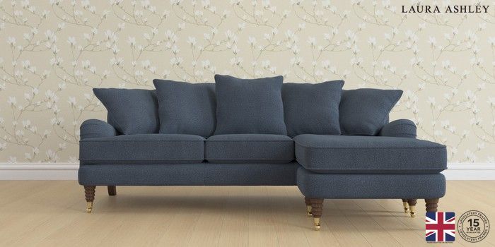 6.12.1 Buy Lynden Scatter Back by Laura Ashley Medium Sofa Chaise - Universal Lundar Chenille Navy Blue Ornate Brass Castor - Chestnut from the Next UK online shop Click here to use our accessible website