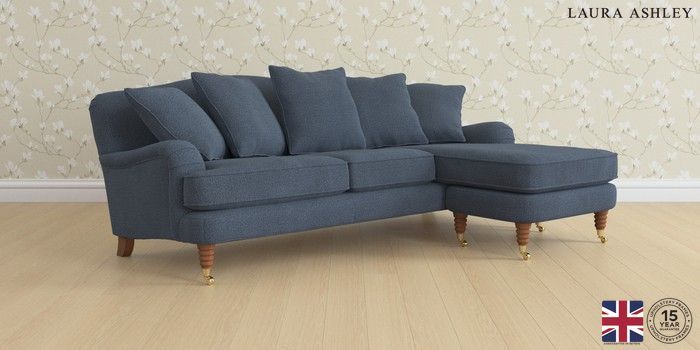 6.12.1 Buy Lynden Scatter Back by Laura Ashley Medium Sofa Chaise - Universal Lundar Chenille Navy Blue Ornate Brass Castor - Teak from the Next UK online shop Click here to use our accessible website