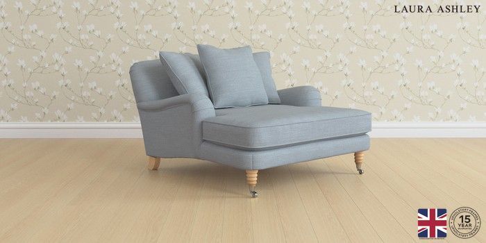 6.12.1 Buy Lynden Scatter Back by Laura Ashley Snuggle Chaise Kinsham Seaspray Blue Ornate Chrome Castor - Light Oak from the Next UK online shop Click here to use our accessible website
