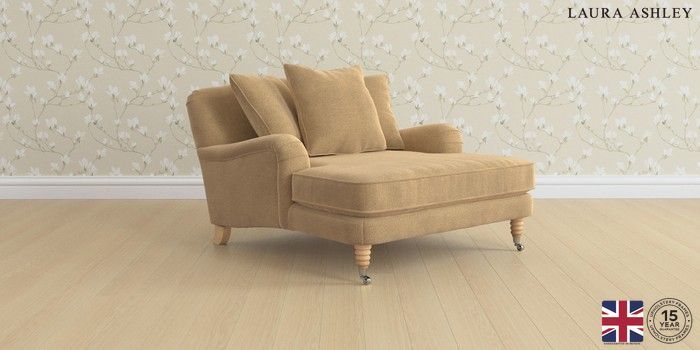 6.12.1 Buy Lynden Scatter Back by Laura Ashley Snuggle Chaise Lundar Chenille Caramel Natural Ornate Chrome Castor - Light Oak from the Next UK online shop Click here to use our accessible website