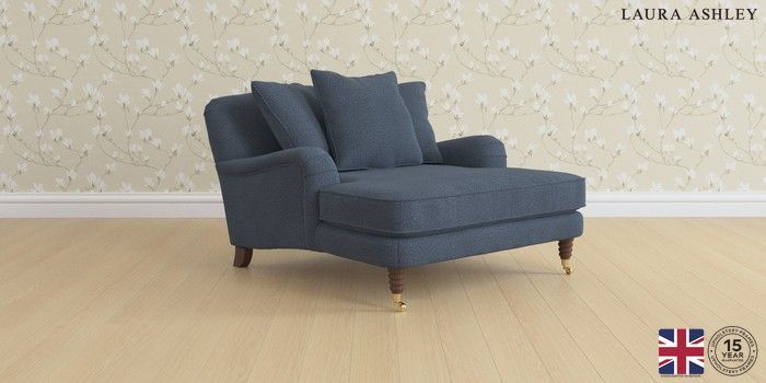 6.12.1 Buy Lynden Scatter Back by Laura Ashley Snuggle Chaise Lundar Chenille Navy Blue Ornate Brass Castor - Chestnut from the Next UK online shop Click here to use our accessible website