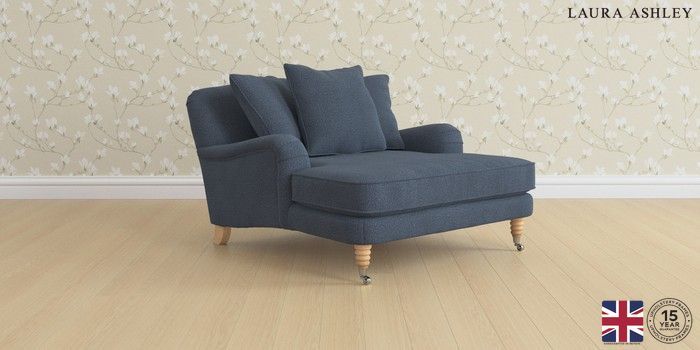 6.12.1 Buy Lynden Scatter Back by Laura Ashley Snuggle Chaise Lundar Chenille Navy Blue Ornate Chrome Castor - Light Oak from the Next UK online shop Click here to use our accessible website