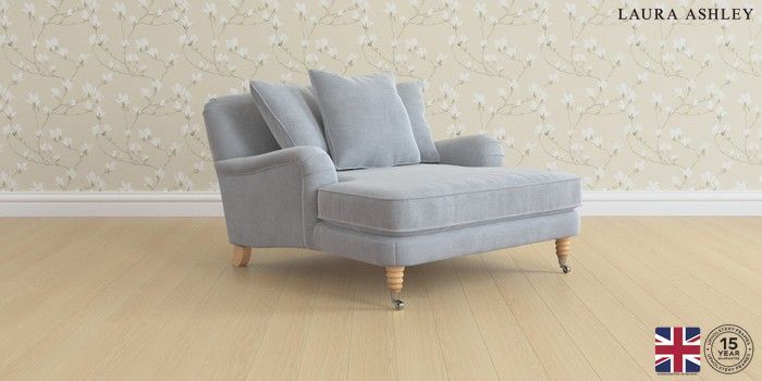 6.12.1 Buy Lynden Scatter Back by Laura Ashley Snuggle Chaise Peyton Powder Blue Ornate Chrome Castor - Light Oak from the Next UK online shop Click here to use our accessible website