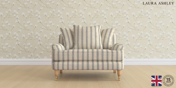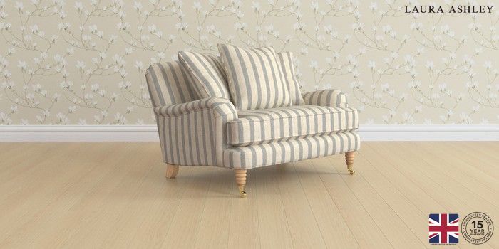 6.12.1 Buy Lynden Scatter Back by Laura Ashley Snuggle Kinsham Stripe Seaspray Blue Ornate Brass Castor - Light Oak from the Next UK online shop Click here to use our accessible website