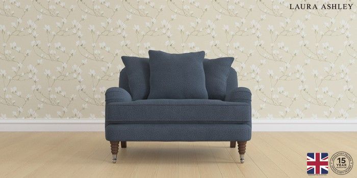 6.12.1 Buy Lynden Scatter Back by Laura Ashley Snuggle Lundar Chenille Navy Blue Ornate Chrome Castor - Chestnut from the Next UK online shop Click here to use our accessible website