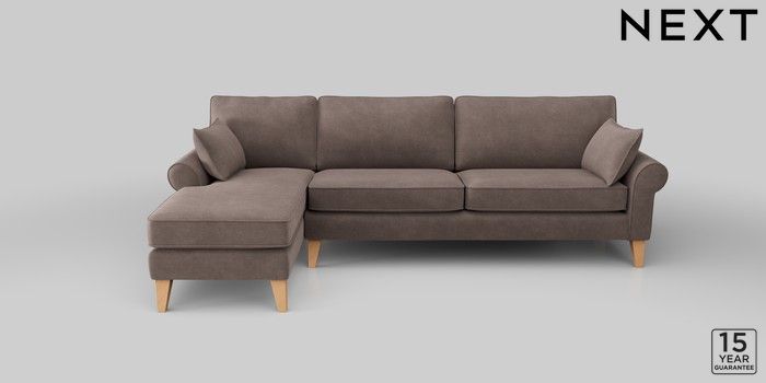 6.12.1 Buy Mallory Medium Sofa Chaise - Left Hand Luxe Chenille Mink Brown High Tapered - Light from the Next UK online shop Click here to use our accessible website