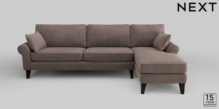 6.12.1 Buy Mallory Medium Sofa Chaise - Right Hand Luxe Chenille Mink Brown High Tapered - Dark from the Next UK online shop Click here to use our accessible website