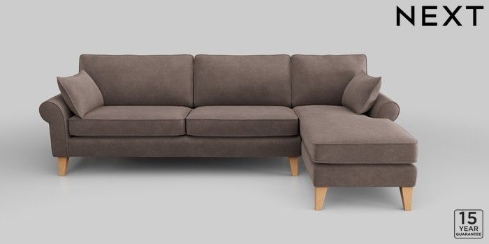 6.12.1 Buy Mallory Medium Sofa Chaise - Right Hand Luxe Chenille Mink Brown High Tapered - Light from the Next UK online shop Click here to use our accessible website