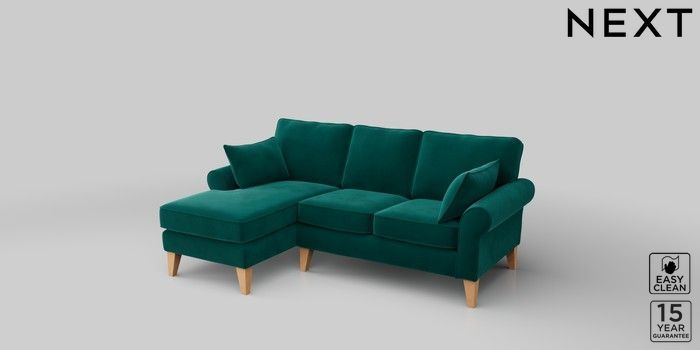 6.12.1 Buy Mallory Small Sofa Chaise - Left Hand Plush Velvet Easy Clean Juniper Green High Tapered - Light from the Next UK online shop Click here to use our accessible website