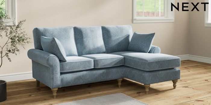 7.2.6 Buy Mallory Small Sofa Chaise - Right Hand Plush Chenille Light Blue High Turned - Light from the Next UK online shop Click here to use our accessible website