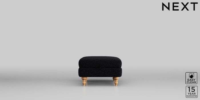 6.12.1 Buy Mallory Storage Footstool Fine Chenille Easy Clean Black High Turned - Light from the Next UK online shop Click here to use our accessible website