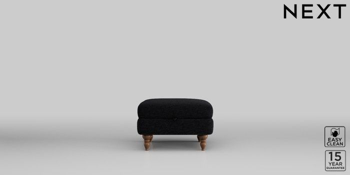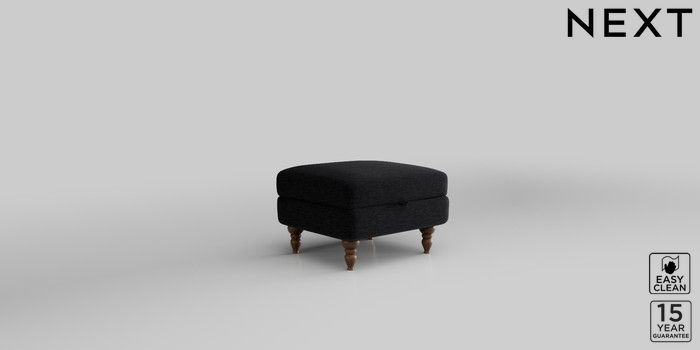 6.12.1 Buy Mallory Storage Footstool Fine Chenille Easy Clean Black High Turned - Mid from the Next UK online shop Click here to use our accessible website