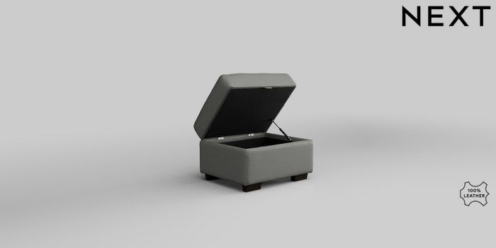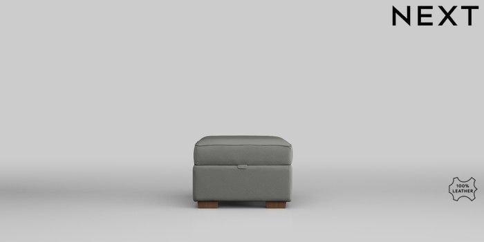 6.12.1 Buy Malvern Leather Storage Footstool Columbia French Grey Small Slim Block - Dark from the Next UK online shop Click here to use our accessible website