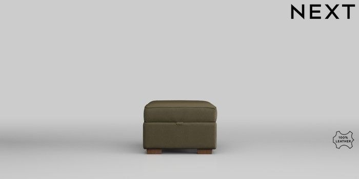 6.12.1 Buy Malvern Leather Storage Footstool Turin Leather Moss Green Small Slim Block - Mid from the Next UK online shop Click here to use our accessible website
