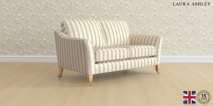 6.12.1 Buy Marford by Laura Ashley 2 Seater Sofa Kinsham Stripe Natural Straight Brass Castor - Light Oak from the Next UK online shop Click here to use our accessible website
