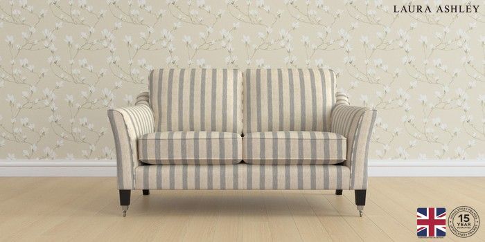 6.12.1 Buy Marford by Laura Ashley 2 Seater Sofa Kinsham Stripe Seaspray Blue Straight Chrome Castor - Black from the Next UK online shop Click here to use our accessible website
