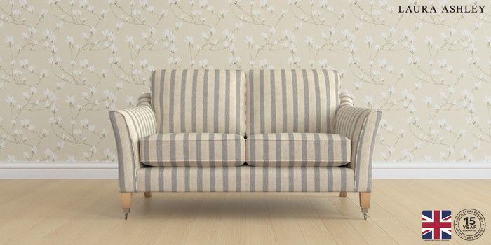 6.12.1 Buy Marford by Laura Ashley 2 Seater Sofa Kinsham Stripe Seaspray Blue Straight Chrome Castor - Light Oak from the Next UK online shop Click here to use our accessible website