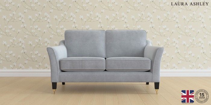 6.12.1 Buy Marford by Laura Ashley 2 Seater Sofa Peyton Powder Blue Straight Brass Castor - Black from the Next UK online shop Click here to use our accessible website