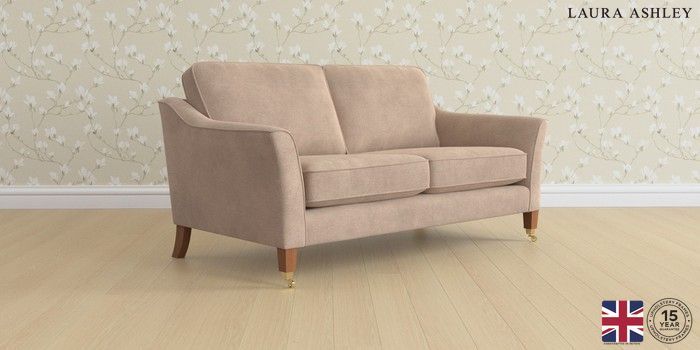 6.12.1 Buy Marford by Laura Ashley 3 Seater Small Sofa Ailsworth Mink Natural Straight Brass Castor - Teak from the Next UK online shop Click here to use our accessible website