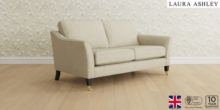 6.11.4 Buy Marford by Laura Ashley 3 Seater Small Sofa Anneliese Natural Straight Brass Castor - Black from the Next UK online shop Click here to use our accessible website