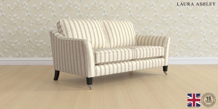 6.12.1 Buy Marford by Laura Ashley 3 Seater Small Sofa Kinsham Stripe Natural Straight Chrome Castor - Black from the Next UK online shop Click here to use our accessible website