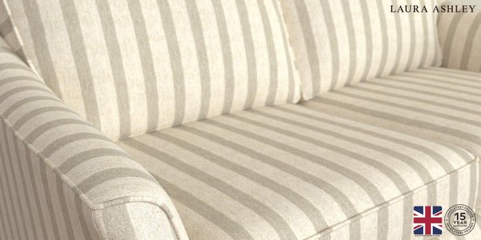 6.12.1 Buy Marford by Laura Ashley 3 Seater Small Sofa Kinsham Stripe Natural Straight Chrome Castor - Teak from the Next UK online shop Click here to use our accessible website