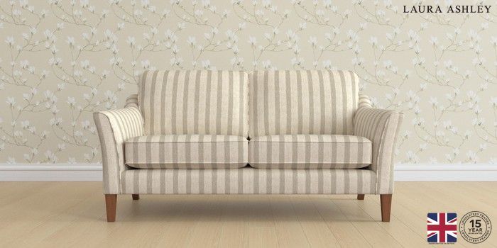 6.12.1 Buy Marford by Laura Ashley 3 Seater Small Sofa Kinsham Stripe Natural Straight Mid - Teak from the Next UK online shop Click here to use our accessible website