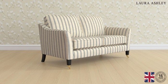6.12.1 Buy Marford by Laura Ashley 3 Seater Small Sofa Kinsham Stripe Seaspray Blue Straight Brass Castor - Black from the Next UK online shop Click here to use our accessible website