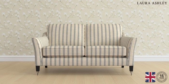6.12.1 Buy Marford by Laura Ashley 3 Seater Small Sofa Kinsham Stripe Seaspray Blue Straight Chrome Castor - Black from the Next UK online shop Click here to use our accessible website