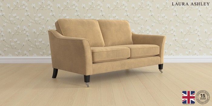 6.12.1 Buy Marford by Laura Ashley 3 Seater Small Sofa Lundar Chenille Caramel Natural Straight Chrome Castor - Black from the Next UK online shop Click here to use our accessible website