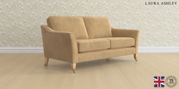 6.12.1 Buy Marford by Laura Ashley 3 Seater Small Sofa Lundar Chenille Caramel Natural Straight Chrome Castor - Light Oak from the Next UK online shop Click here to use our accessible website