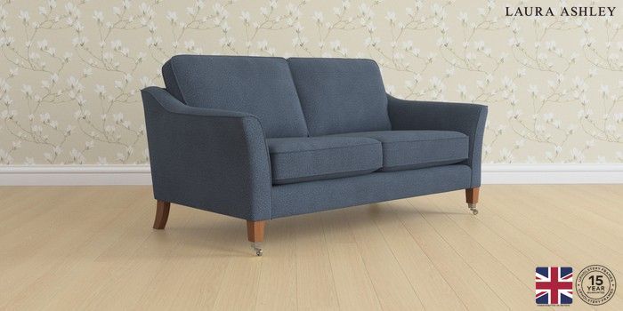 6.12.1 Buy Marford by Laura Ashley 3 Seater Small Sofa Lundar Chenille Navy Blue Straight Chrome Castor - Teak from the Next UK online shop Click here to use our accessible website
