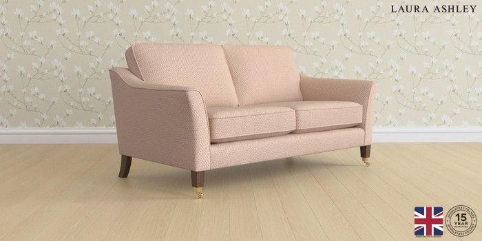6.12.1 Buy Marford by Laura Ashley 3 Seater Small Sofa Melbreak Geo Chalk Pink Straight Brass Castor - Chestnut from the Next UK online shop Click here to use our accessible website