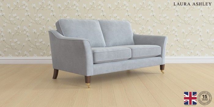 6.12.1 Buy Marford by Laura Ashley 3 Seater Small Sofa Peyton Powder Blue Straight Brass Castor - Chestnut from the Next UK online shop Click here to use our accessible website