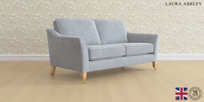 6.12.1 Buy Marford by Laura Ashley 3 Seater Small Sofa Peyton Powder Blue Straight Brass Castor - Light Oak from the Next UK online shop Click here to use our accessible website