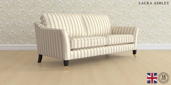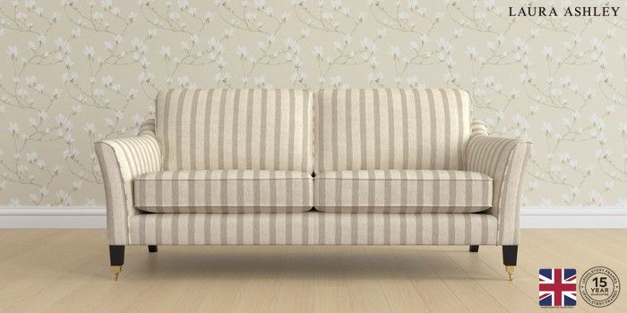 6.12.1 Buy Marford by Laura Ashley 3 Seater Sofa Kinsham Stripe Natural Straight Brass Castor - Black from the Next UK online shop Click here to use our accessible website