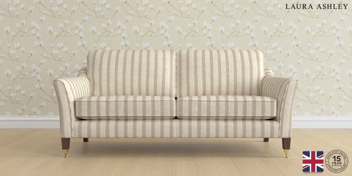 6.12.1 Buy Marford by Laura Ashley 3 Seater Sofa Kinsham Stripe Natural Straight Brass Castor - Chestnut from the Next UK online shop Click here to use our accessible website