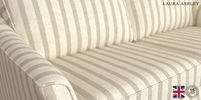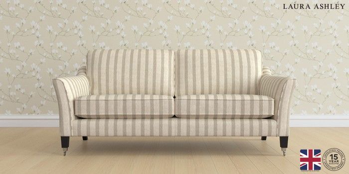 6.12.1 Buy Marford by Laura Ashley 3 Seater Sofa Kinsham Stripe Natural Straight Chrome Castor - Black from the Next UK online shop Click here to use our accessible website